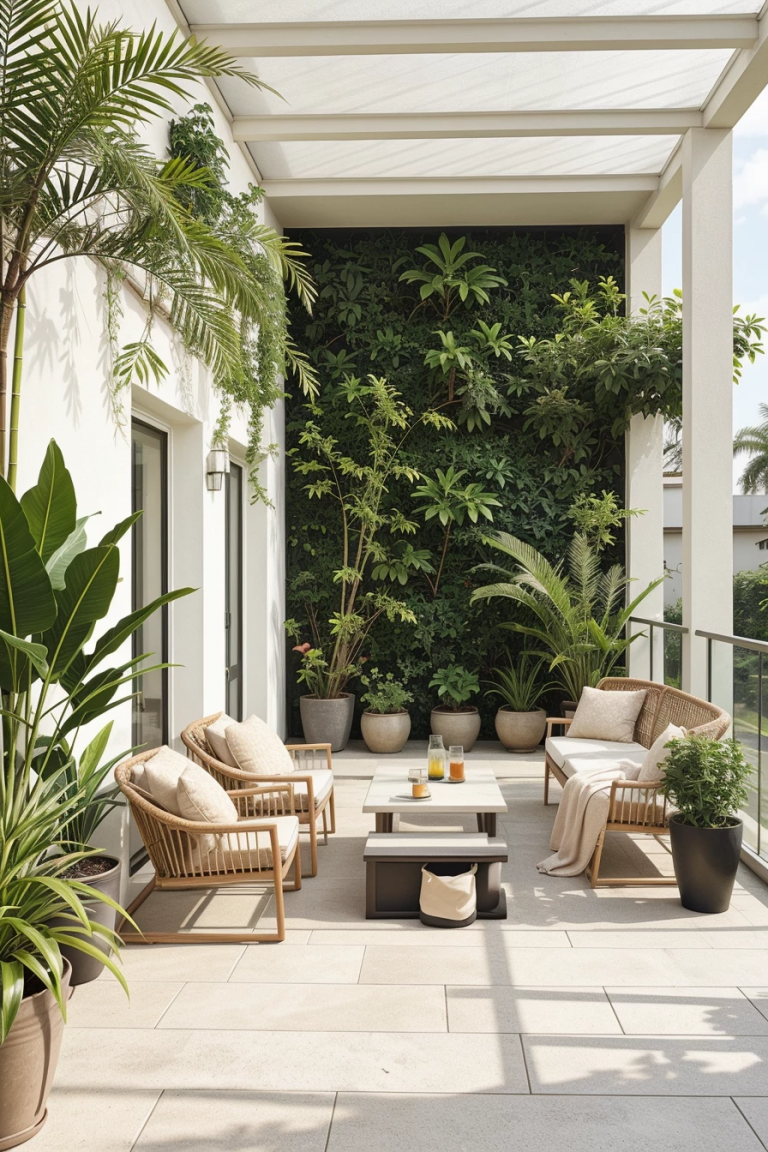 Urban Oasis: Lush Terrace with Modern Seating and Greenery in the City ...