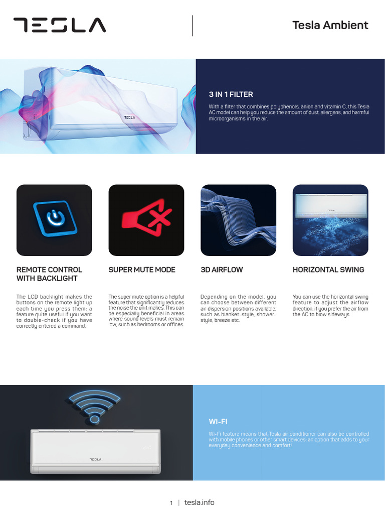Tesla AC: 3-in-1 Filter & Wi-Fi Control | PDF | Air Conditioning ...