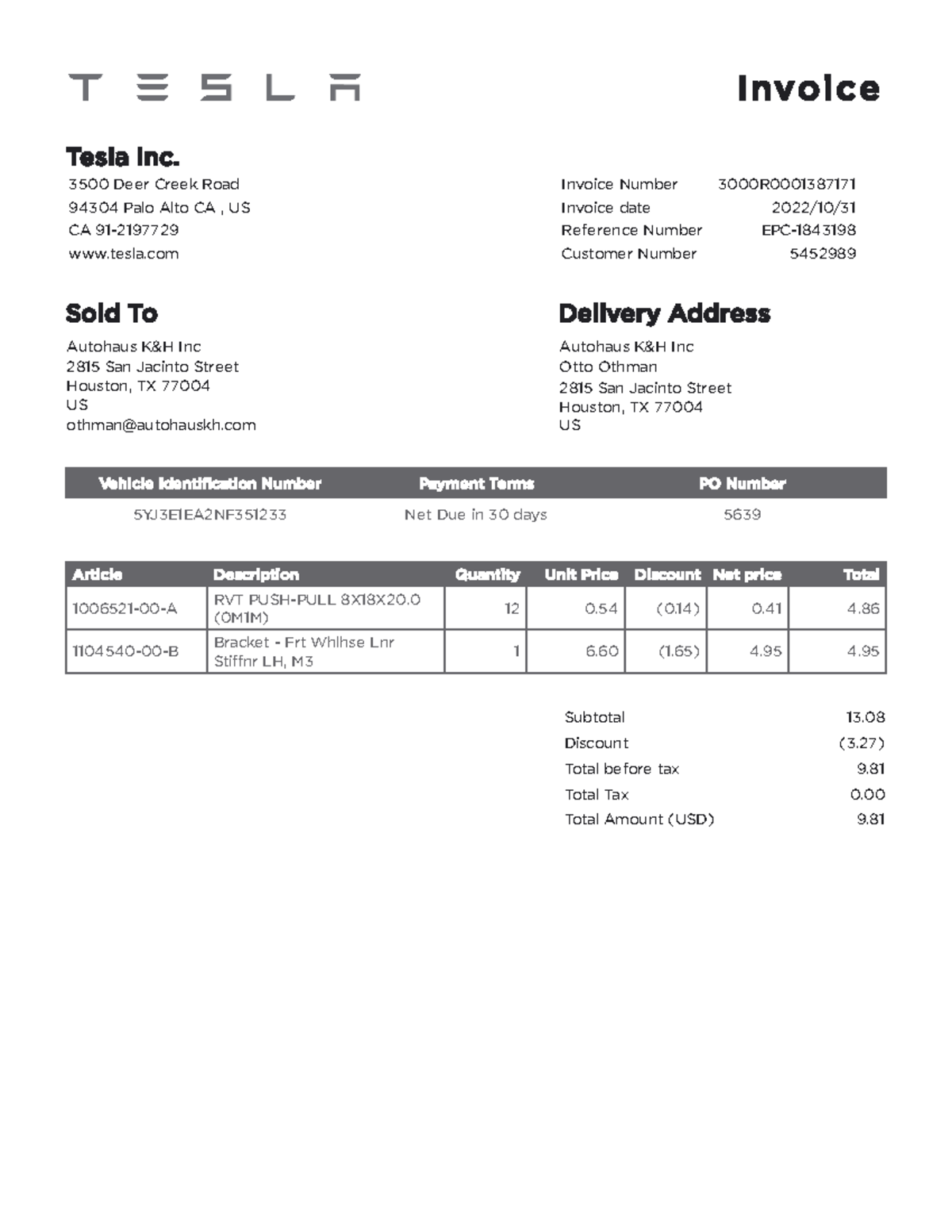 3000R0001387171 - sadsad - Invoic e Tesla Inc. 3500 Deer Creek Road ...