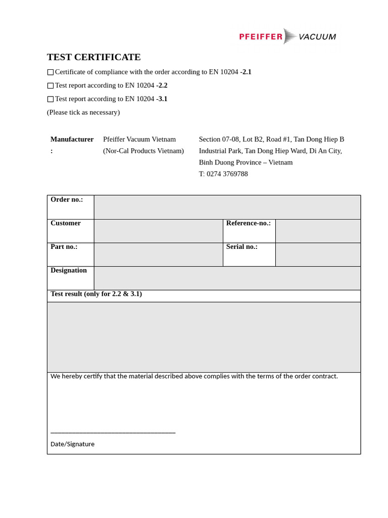 Test Certificate: Quality Engineer Genral Manager | PDF