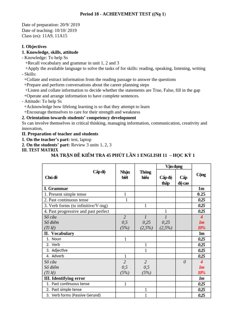 English 11 Achievement Test Overview | PDF