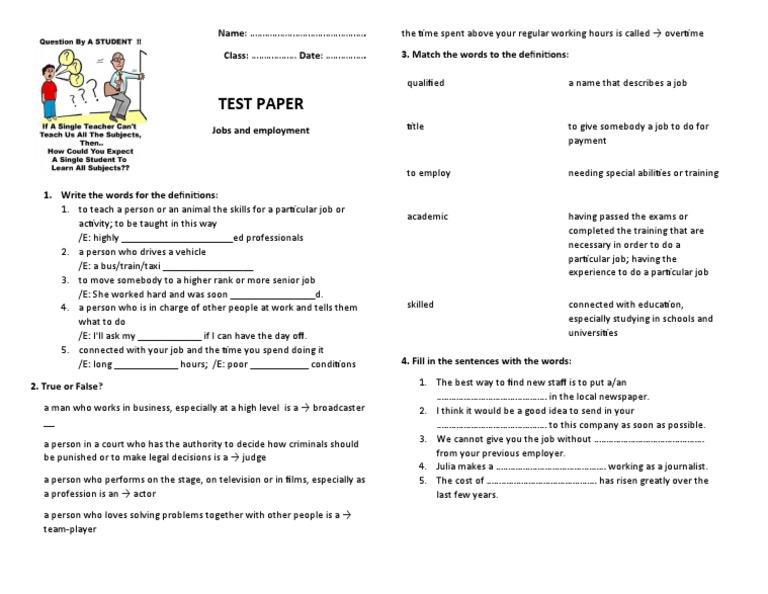 Test paper on work - ESL worksheet by ladysk