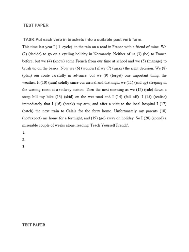 TEST PAPER: English ESL worksheets pdf & doc