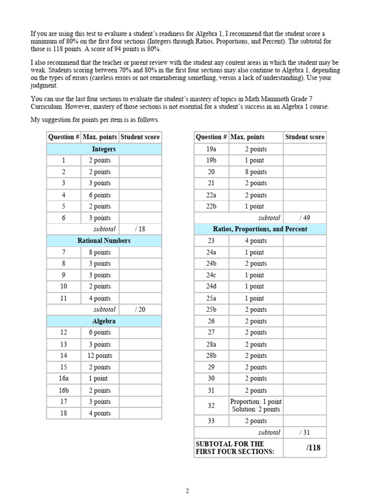 Progression Test Grade 7 | PDF