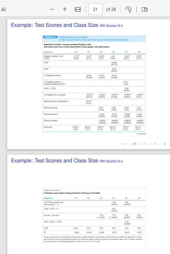 Example: Test Scores and Class Size sw Section 9.4 | Chegg.com