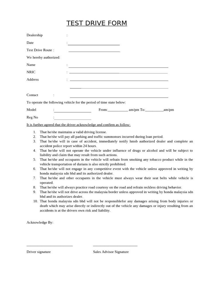 Test Drive Form 1 | PDF