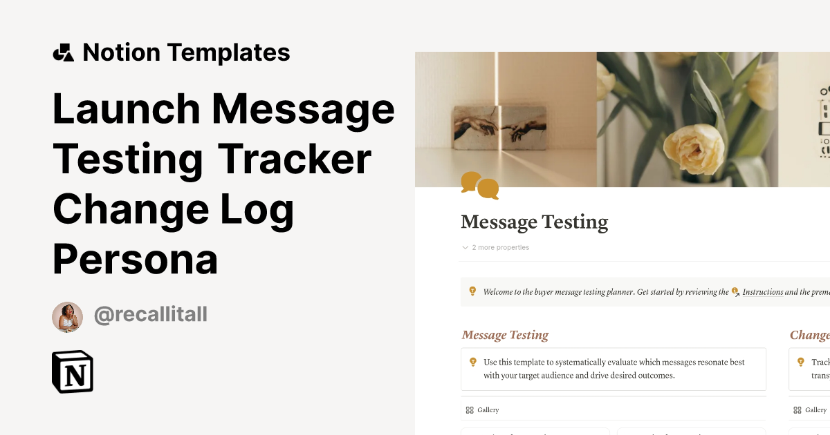 Launch Message Testing Tracker Change Log Persona Template | Notion ...