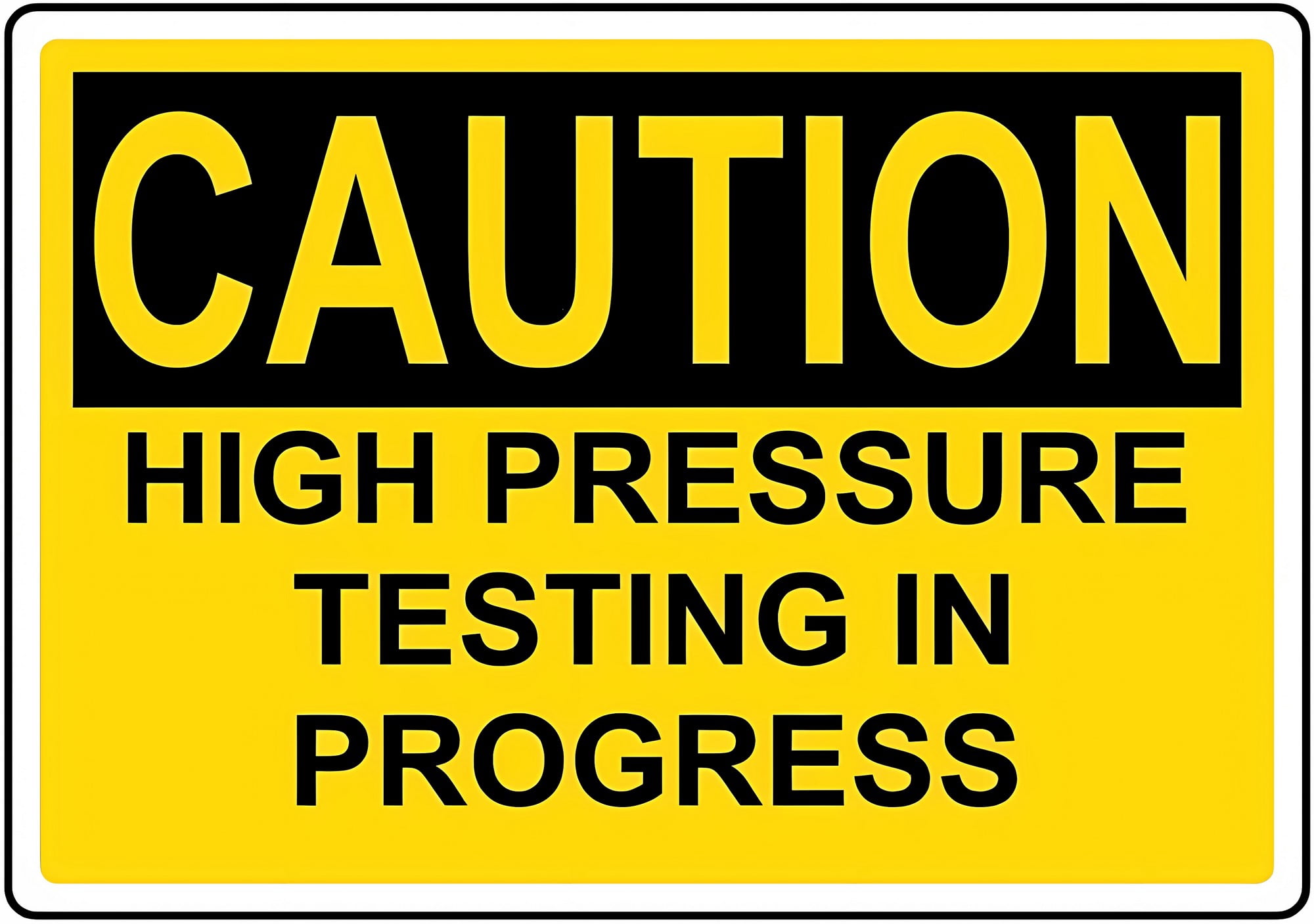 Pressure test in progress Keep out sign | British Safety Signs