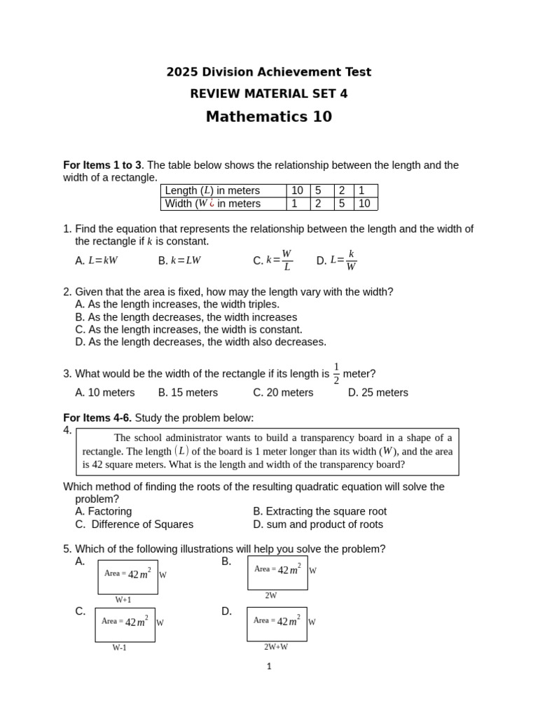 Mathematics 10 Division Test Review | PDF | Polynomial | Function ...