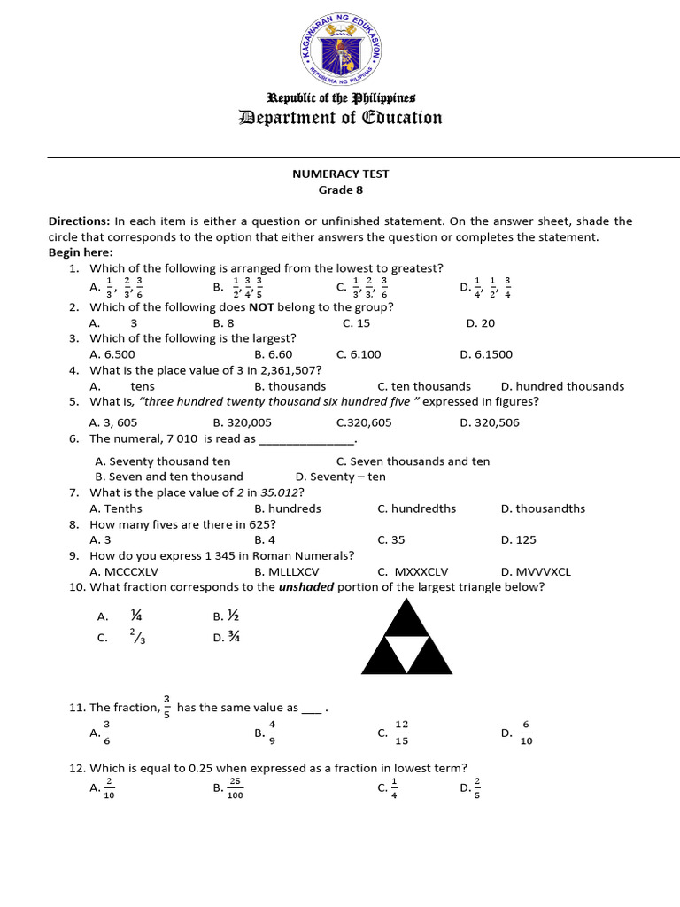 Post Numeracy Test Division For Grade 8 21 | PDF | Area