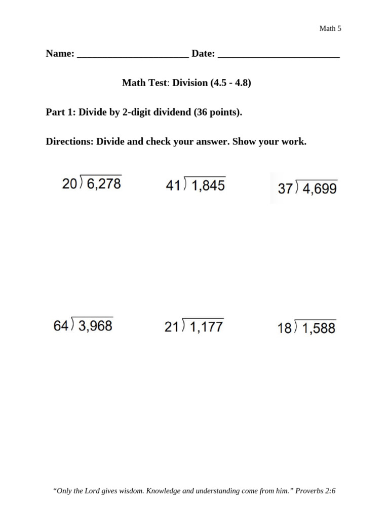 Math Test Division | PDF