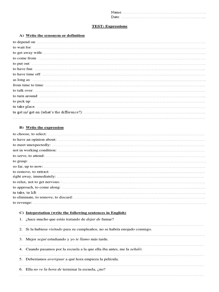 TEST: Expressions A) Write The Synonym or Definition | PDF | Games ...