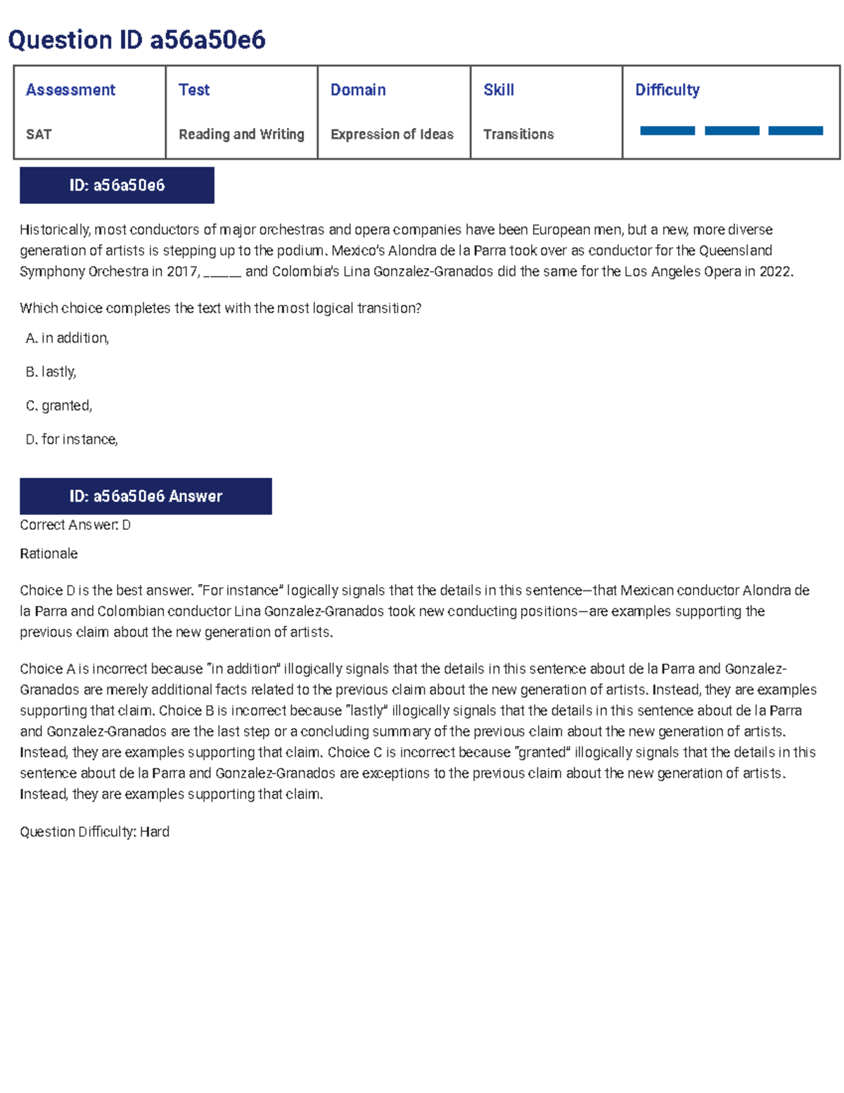 Assessment Test Domain Skill SAT Reading and Writing Expression of ...