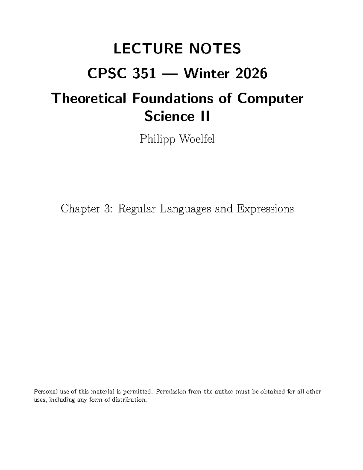 LECTURE NOTES CPSC 351 Winter 2026: Regular Languages & Expressions ...