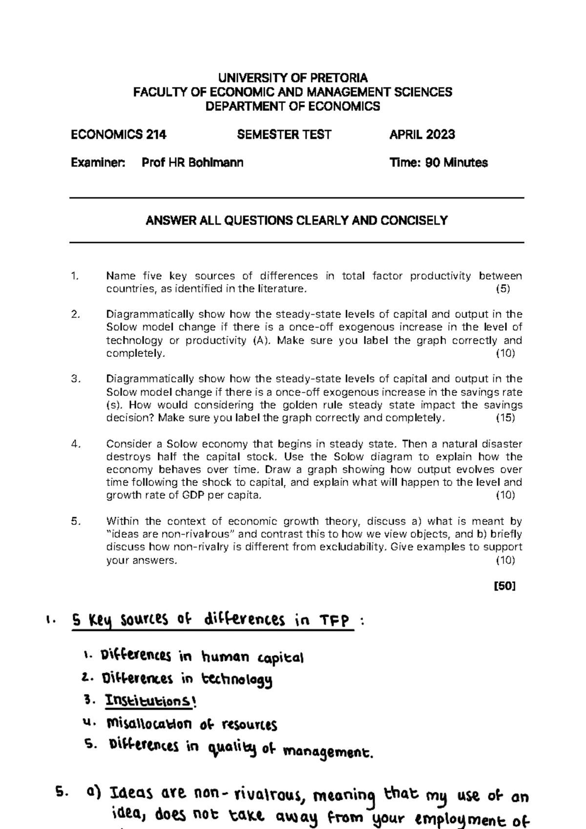 ECO 214 Semester Test 2: Key Concepts in Economic Growth Theory - Studocu