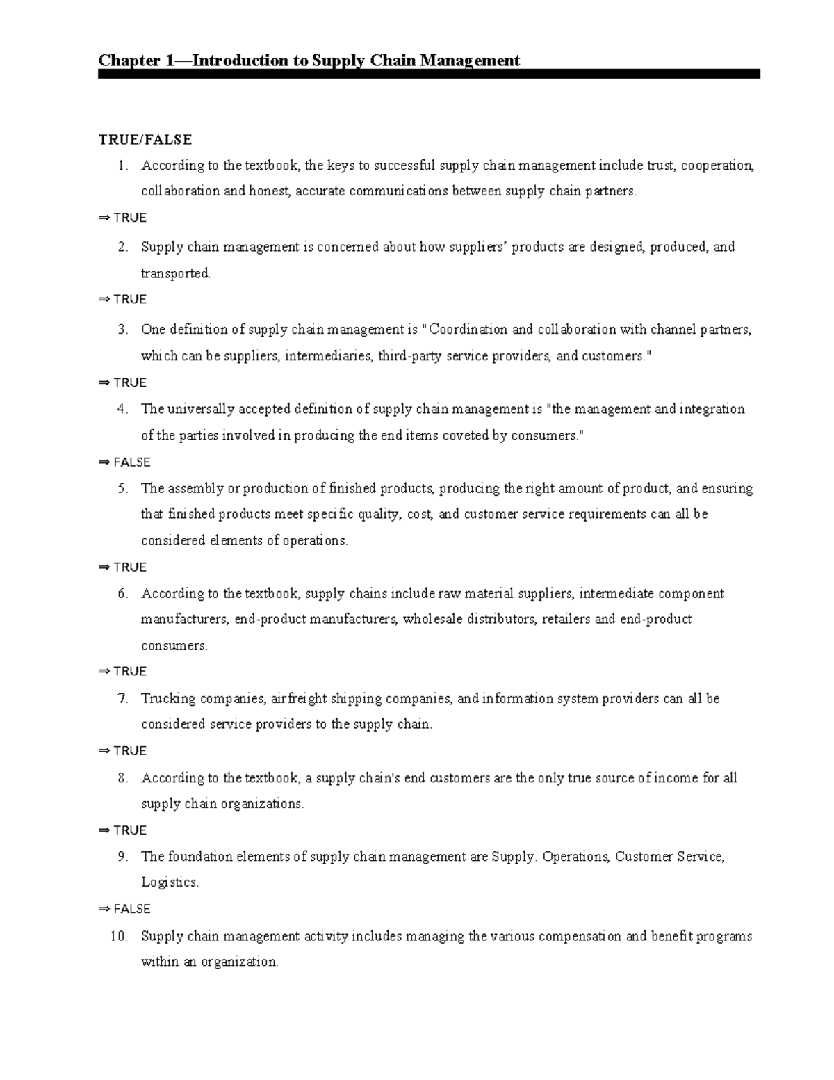 Nhóm 11 - 5e Chapter 1 Supply Chain Management Test Questions - Studocu