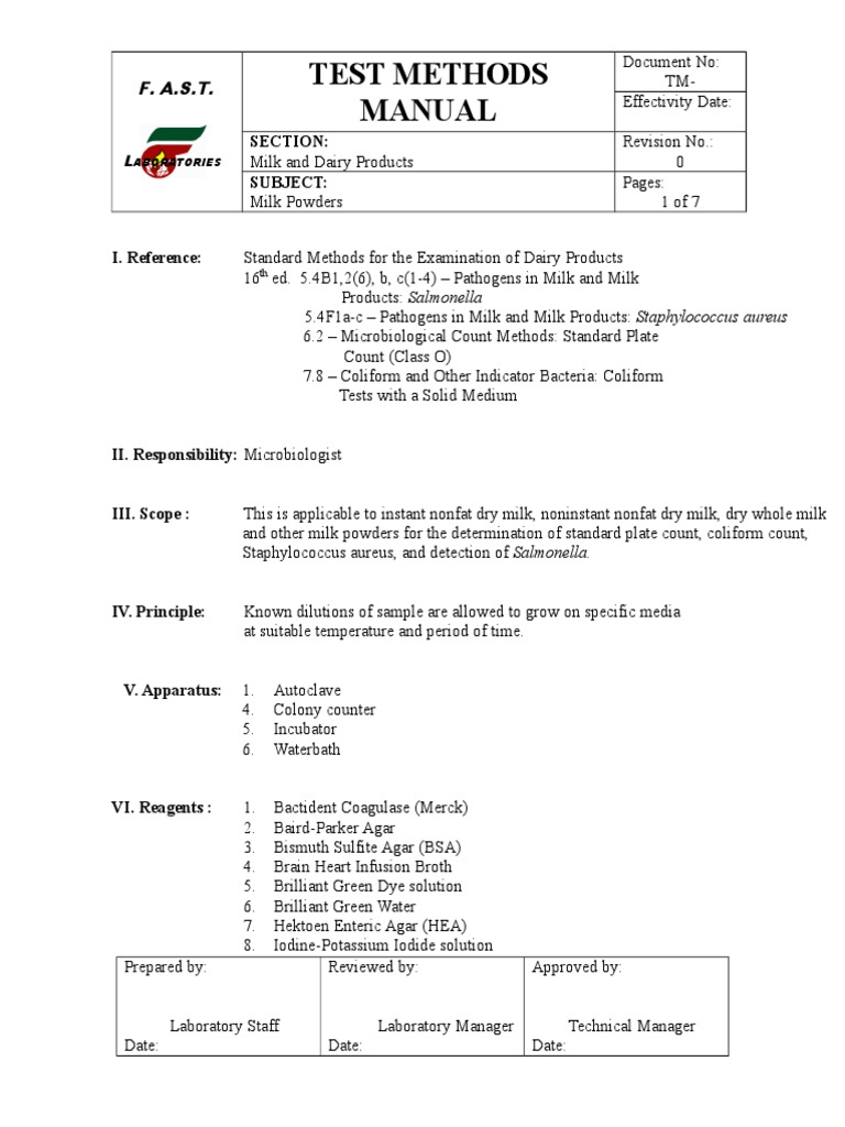 Test Methods Manual: Section: Subject | PDF | Microbiology | Chemistry
