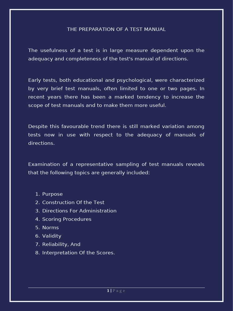Preparation of A Test Manual | PDF | Validity (Statistics) | Cognition