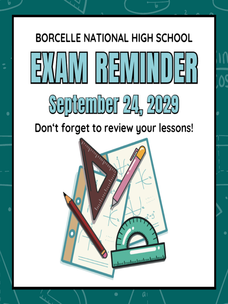 Math Exam Reminder Classroom Announcement in Teal and White Cartoon ...