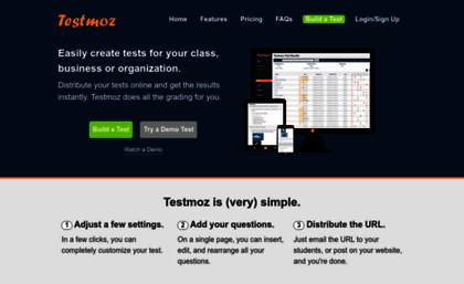 Testmoz.com website. Testmoz - Powerful but Simple Test Generator.