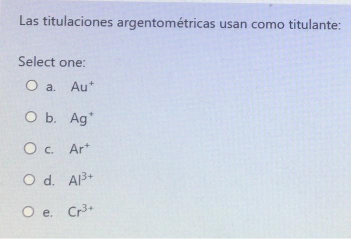 Solved The argentometric titrations use as titrant: Select | Chegg.com