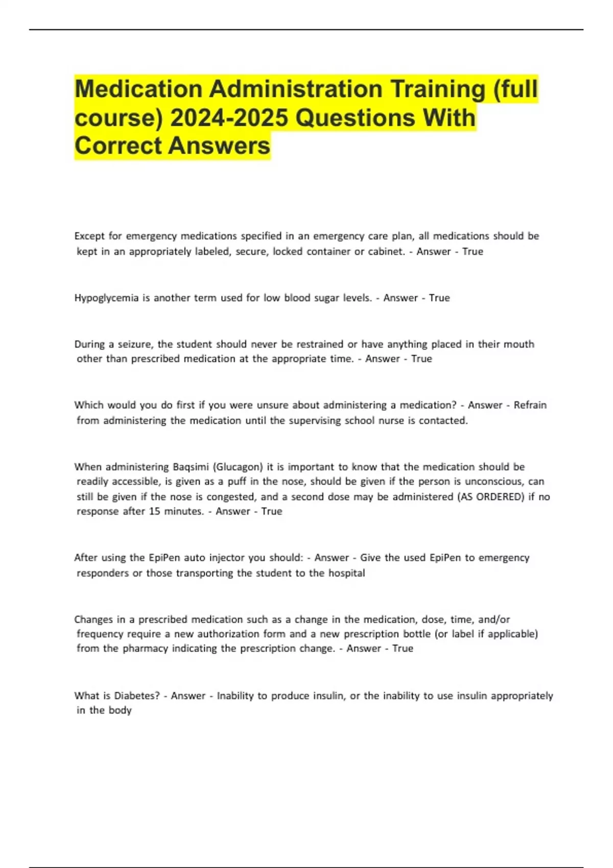 Package deal Texas medication aide test - Stuvia US