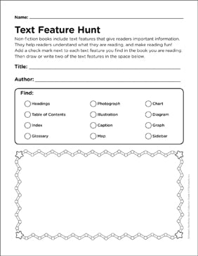 Text Features Scavenger Hunt | Worksheet | Education.com