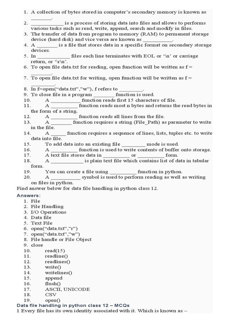 Text Files Worksheet-XII | PDF | Text File | Computer Programming