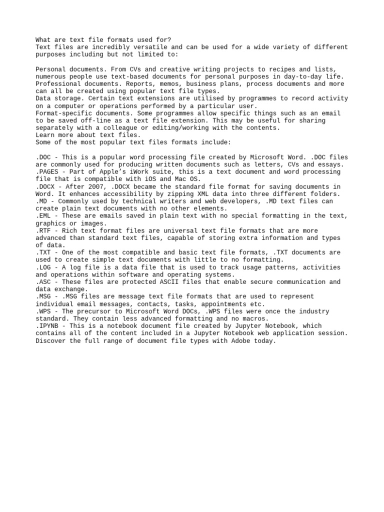 What Are Text File Formats Used For | PDF | Computer File | File Format