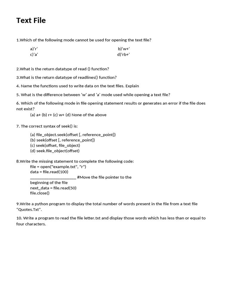 Text File Question Bank Solutions | PDF | Text File | Text