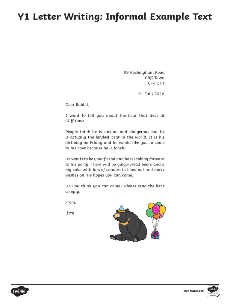 Y2 Letter Writing: Informal Model/Example Text - Twinkl
