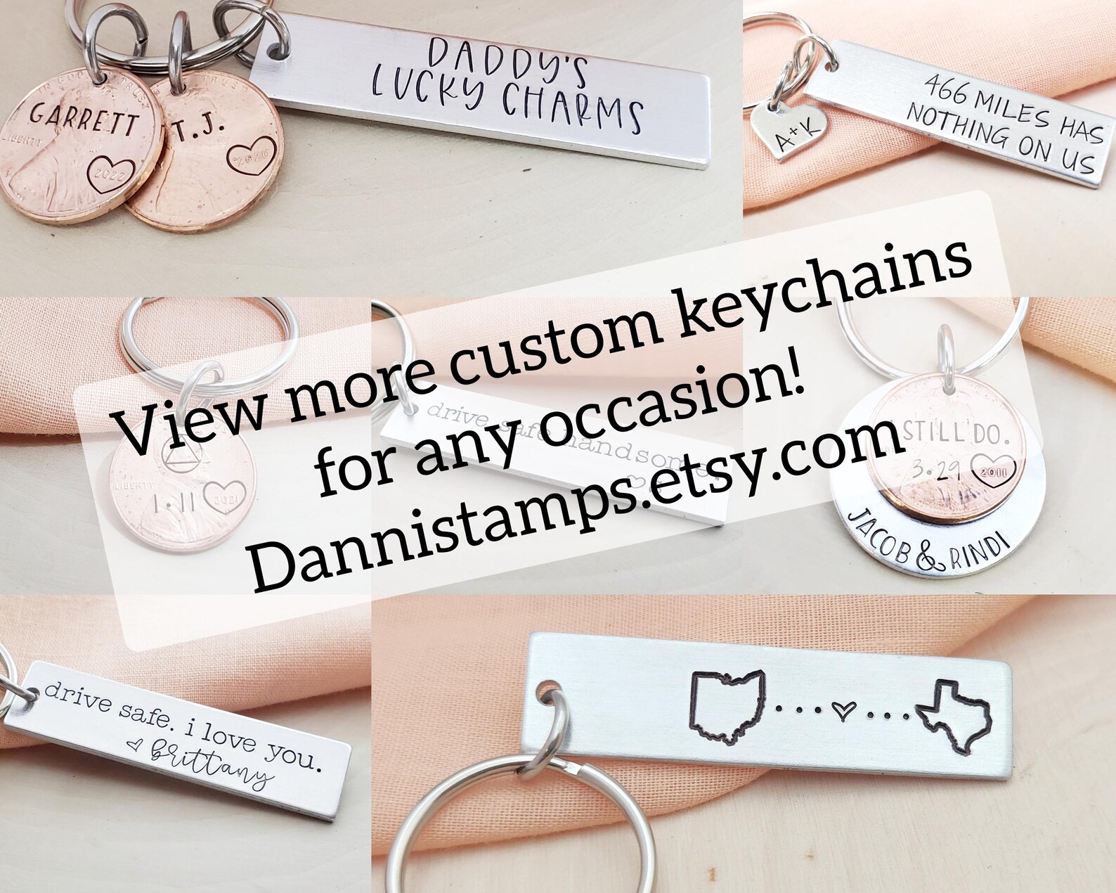 Custom, YOUR CHOICE of Text - Hand Stamped Keychain - Personalized ...