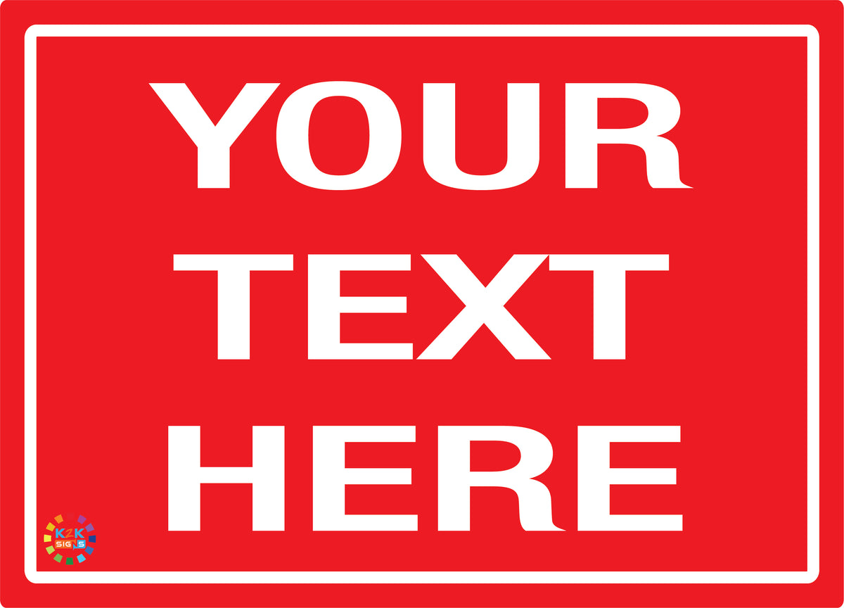 Custom Text Sign Red Background White Text – K2K Signs