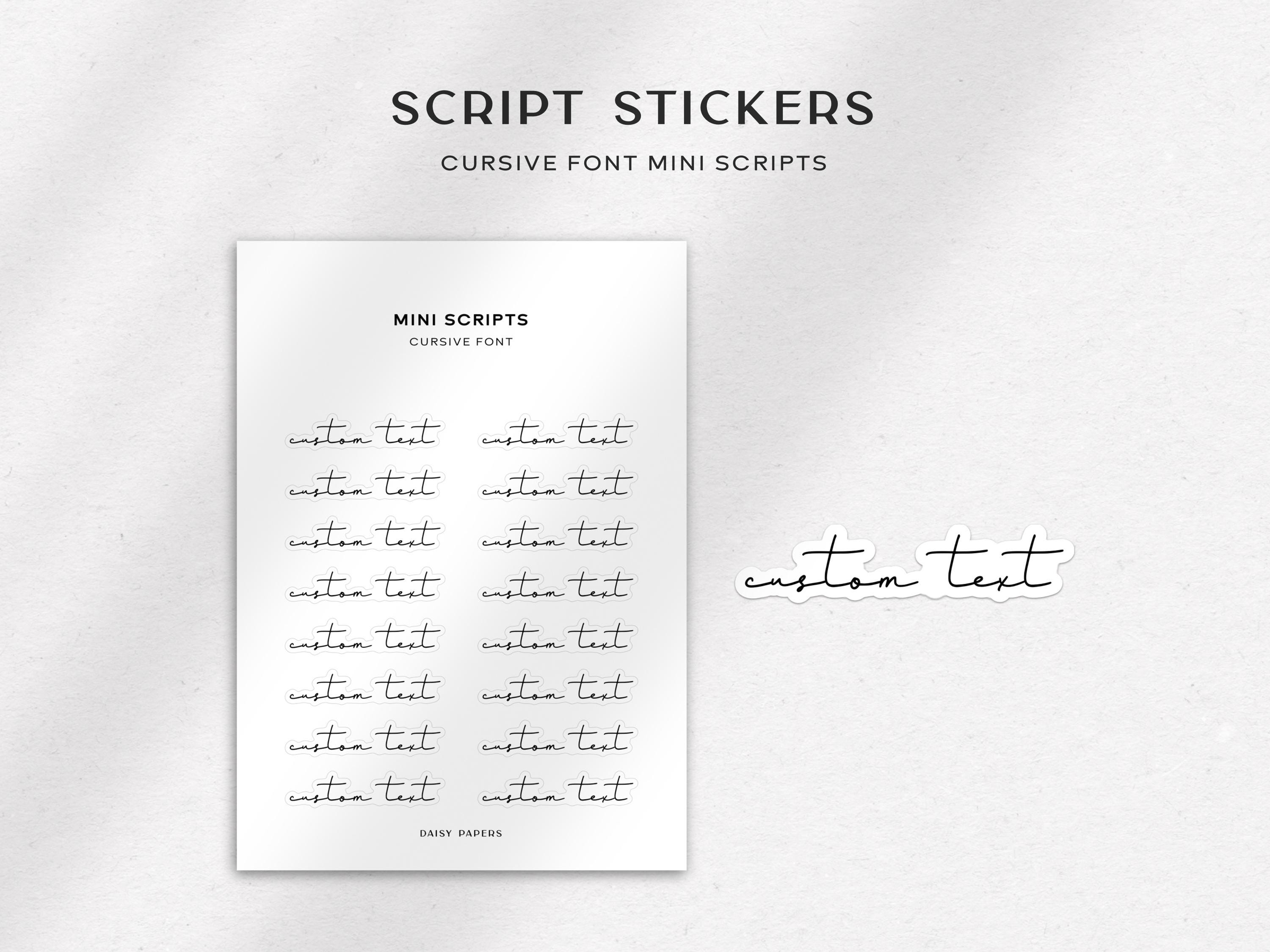 CUSTOM TEXT CURSIVE Font Transparent Mini Script Stickers Minimal ...