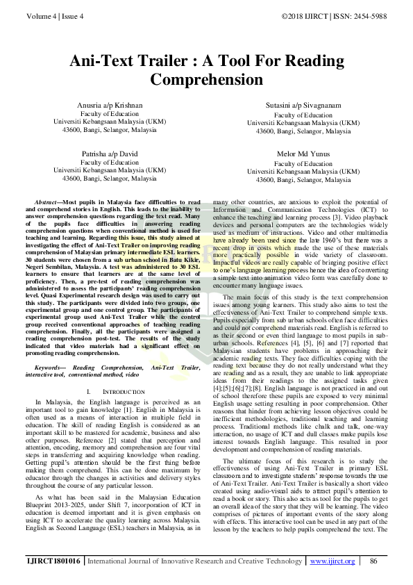 (PDF) Ani-Text Trailer : A Tool For Reading Comprehension