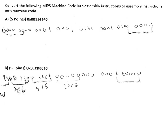 Solved Machine to MIPS: (5 points) Convert the following | Chegg.com