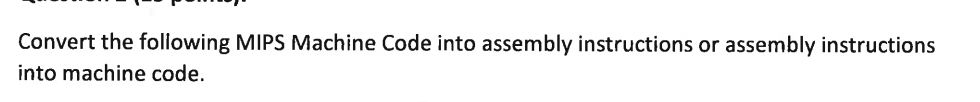 Solved Question 2: MIPS assembly to machine code Convert the | Chegg.com