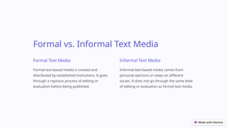 Text Media: Types and Characteristics | PDF | Career & Growth