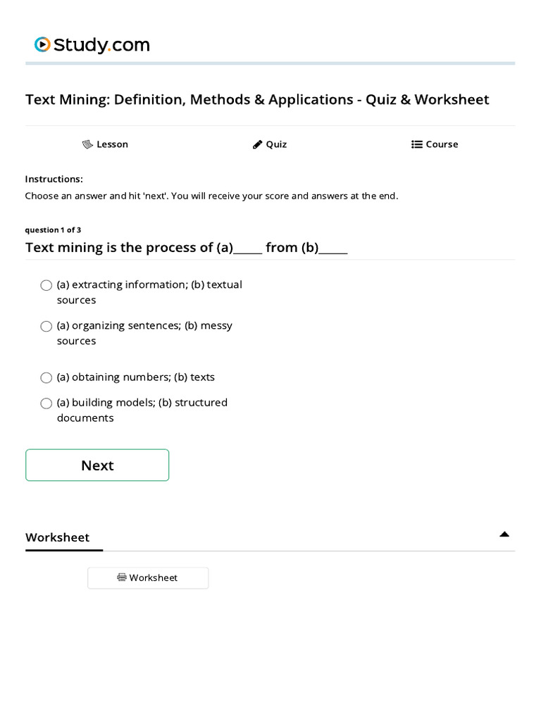 Quiz & Worksheet - Text Mining Fundamentals _ Study | PDF