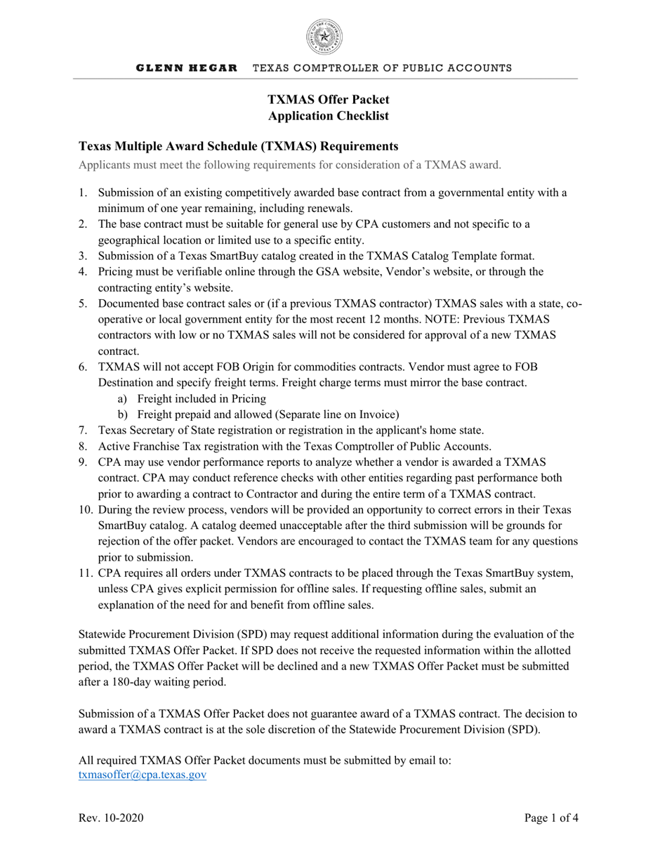 Texas Texas Multiple Award Schedule (Txmas) Offer Packet Application ...