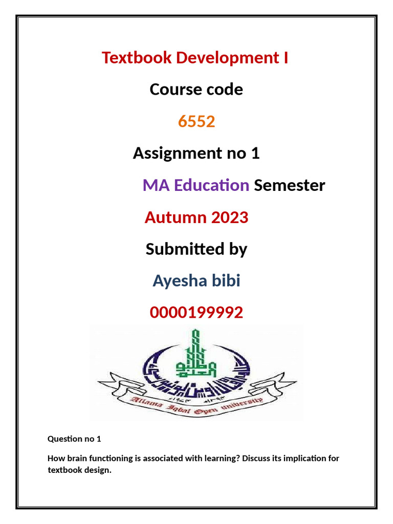 Textbook Development I 6552-1 | PDF | Memory | Curriculum