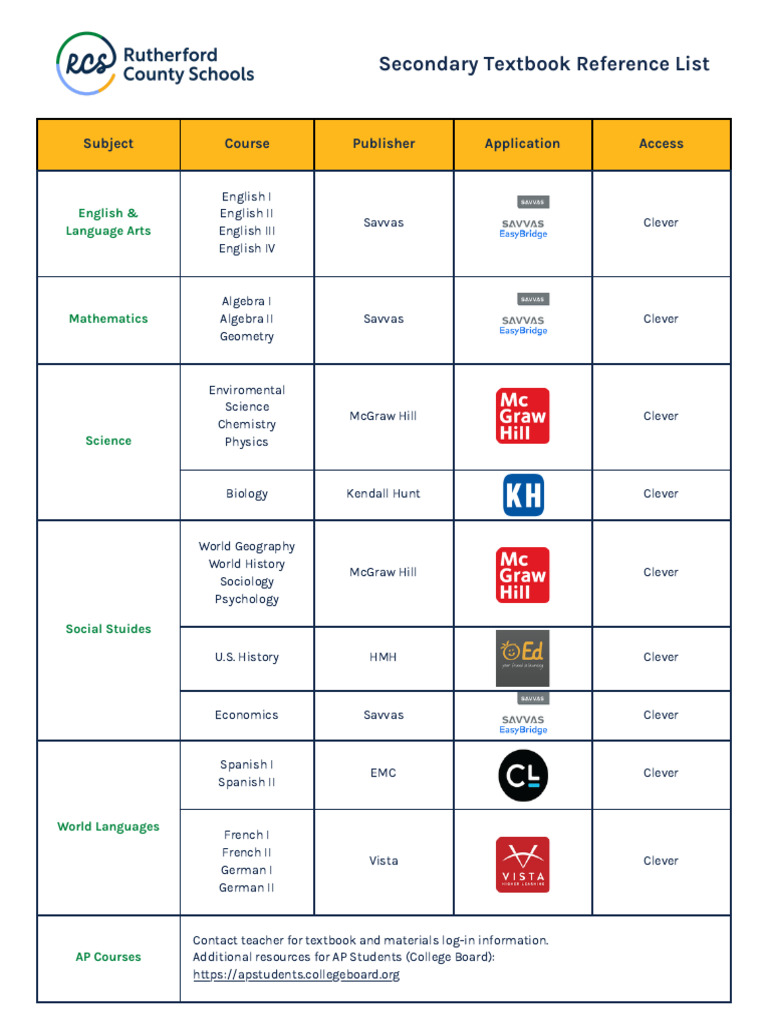 Secondary Textbook Reference List | PDF