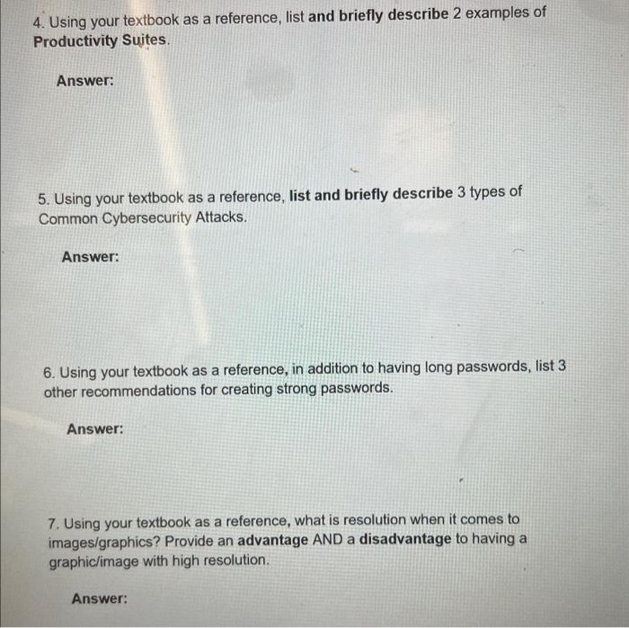 Solved 4. Using your textbook as a reference, list and | Chegg.com
