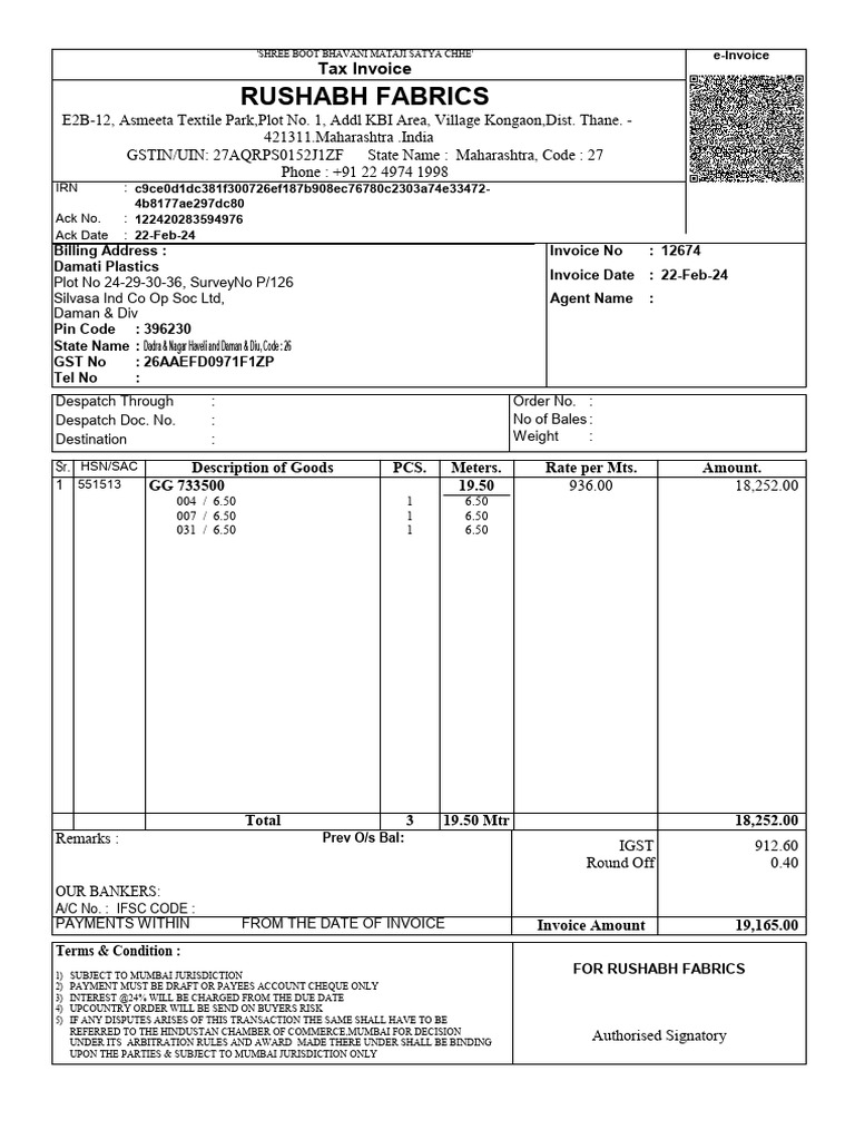 Rushabh Fabrics: Tax Invoice | PDF | Payments | Taxes
