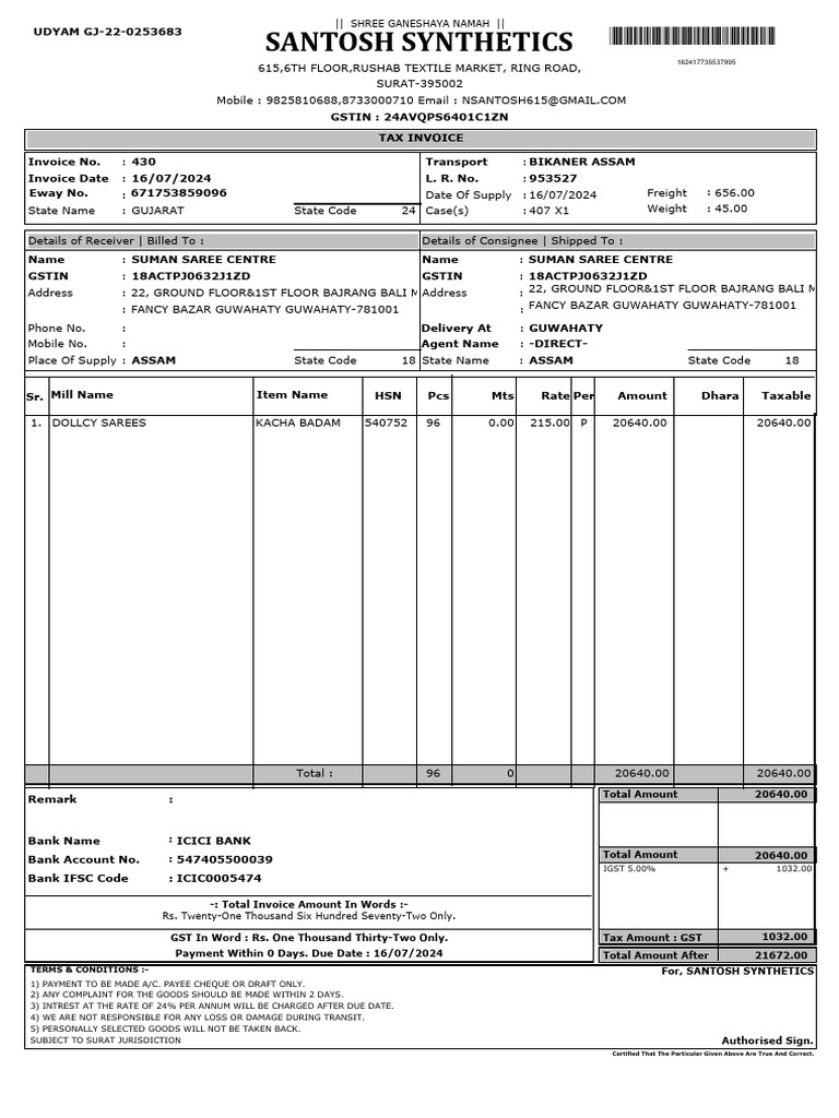 Textile Invoice for Suman Saree Centre | PDF | Payments | Economies