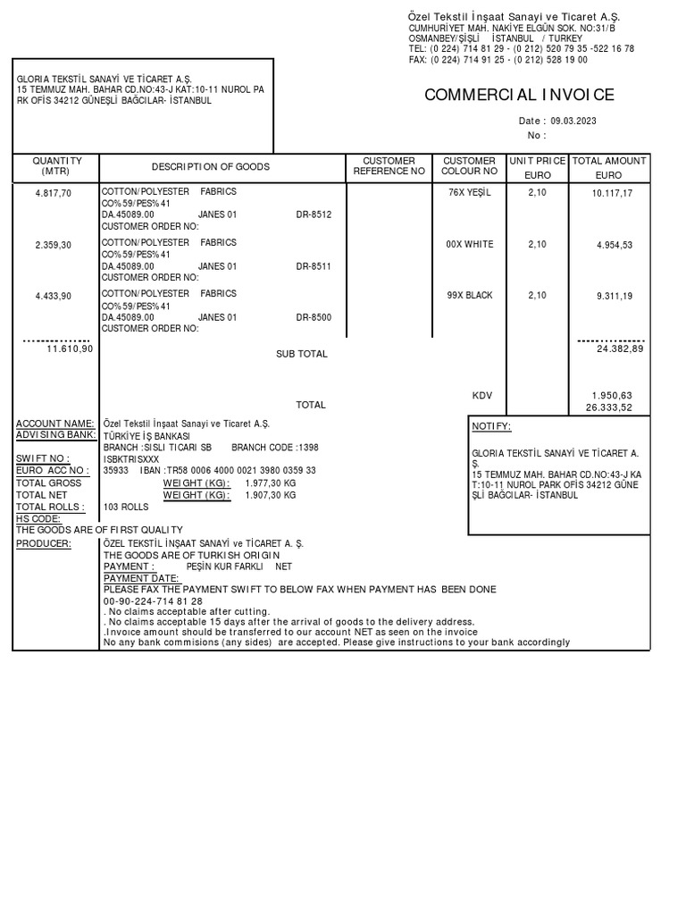 H9-PO-9501 - St. Pauly Textile - Albany Invoice | PDF