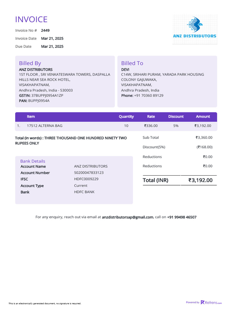 Generate Textile Invoices Free With Custom Textile Bill Format