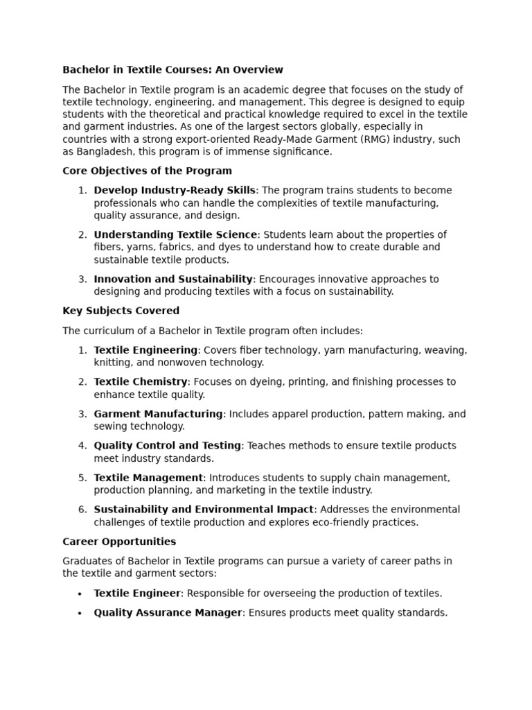 Bachelor in Textile Program Overview | PDF | Textiles | Clothing