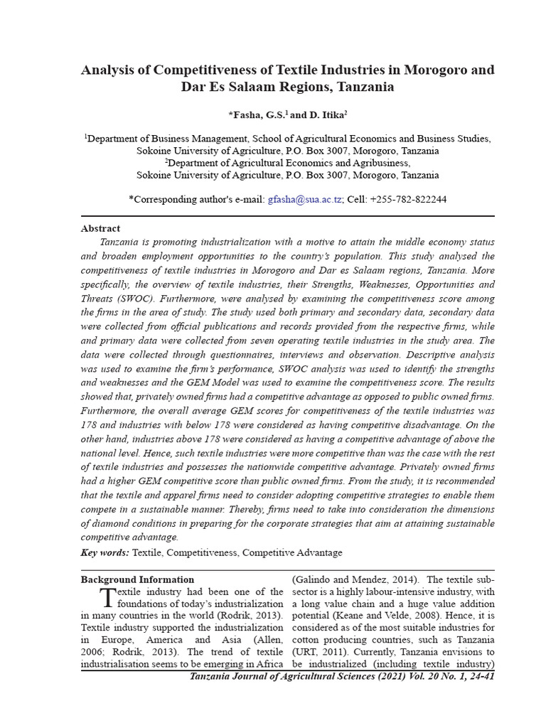 Tanzania's Textile Industry Analysis | PDF | Textiles | Sampling ...