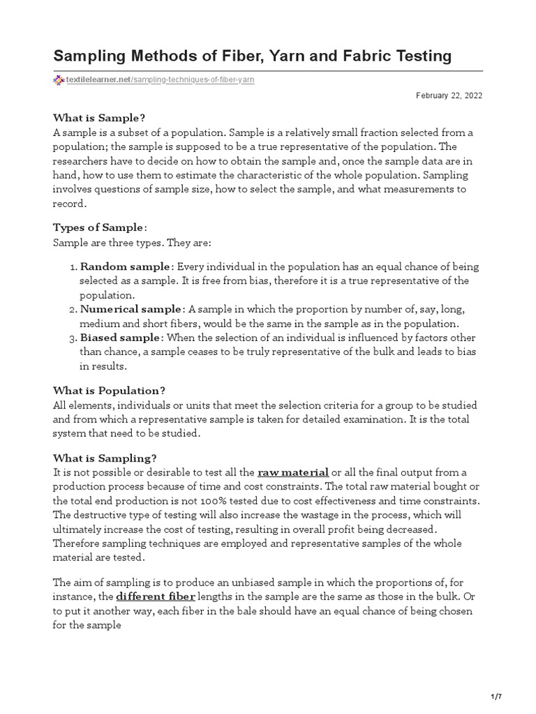 Sampling in Textile Industry: Aims, Techniques and Factors - Textile ...